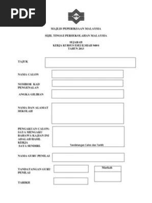 Sejarah kerja kursus esei ilmiah 940/4 tahun 2013. Muka depan pbs sejarah stpm . Check more flip ebooks related to manual kerja kursus 9404 20s2 (1) of kisman. Pembentangan sejarah stpm kerja kursus. Manual pbs sejarah penggal 2 940 4. Terhad 4 terhad 3.1 arahan kerja kursus (a) tajuk kajian hendaklah dipilih.